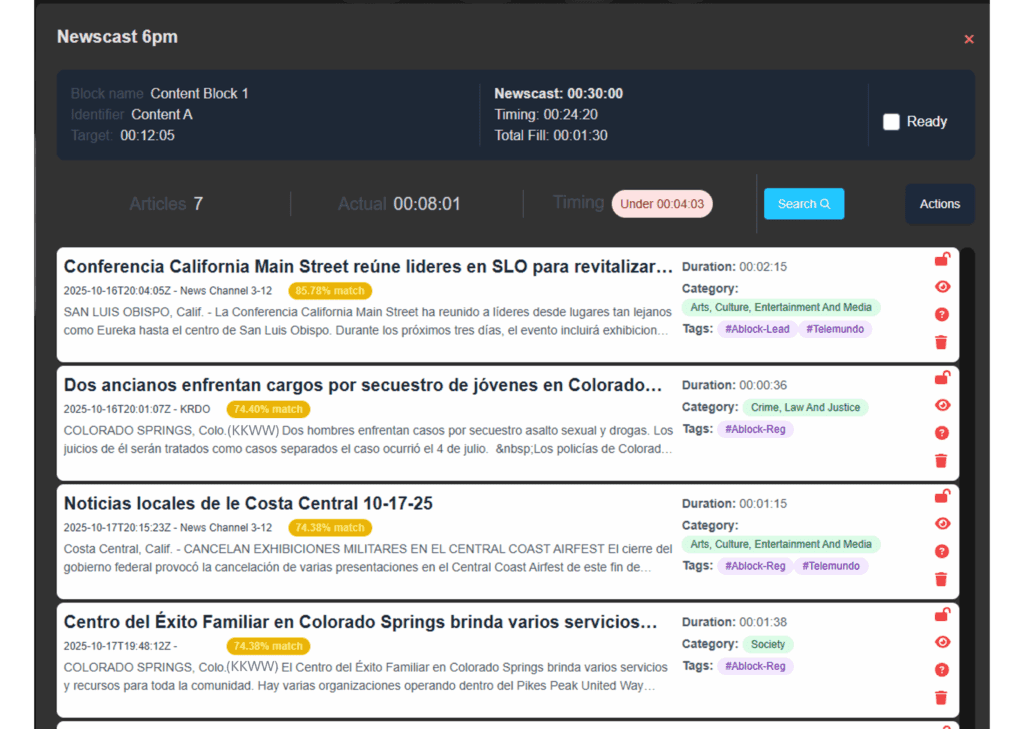 - Categorizes and matches stories to the appropriate rundown segments based on your template’s defined topics.
